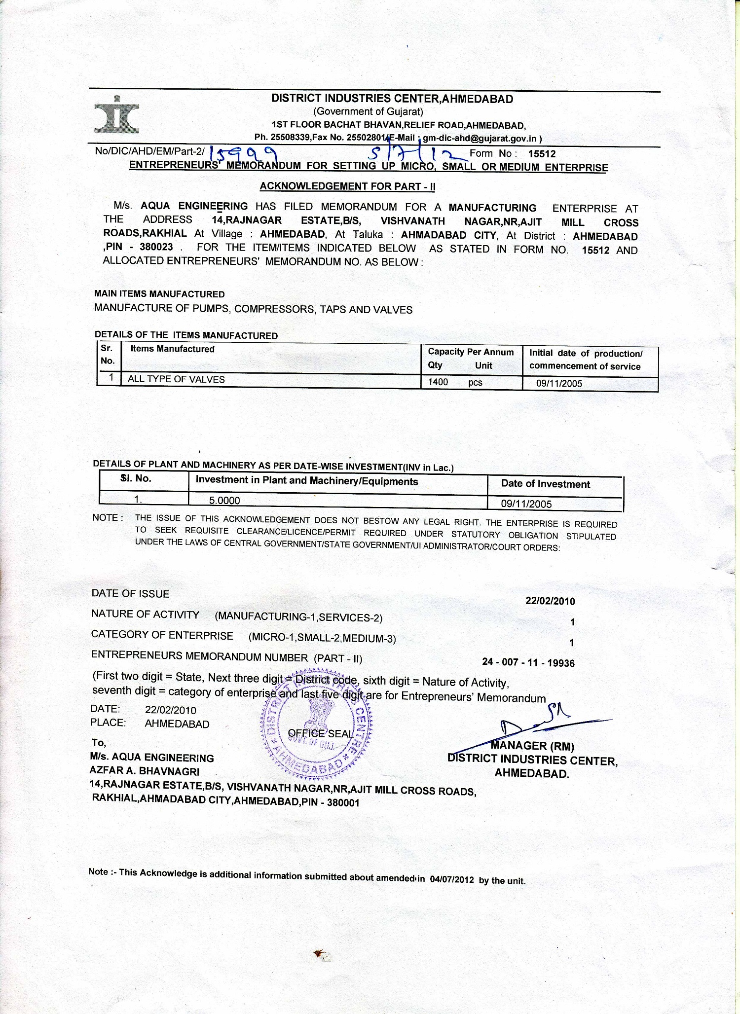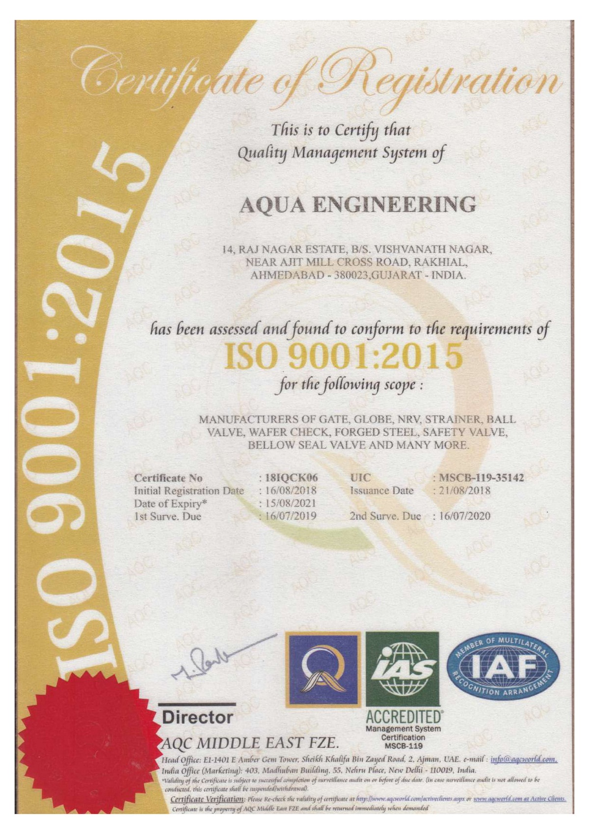 Located in Ahmedabad, Aqua Engineering is a privately owned company. The company has over huge manufacturing space – one of the most modern facilities in the country. This on-site facility allows the company to maintain top quality control for all of its valves. Aqua Engineering has trained engineers, administration, sales and support services staff.