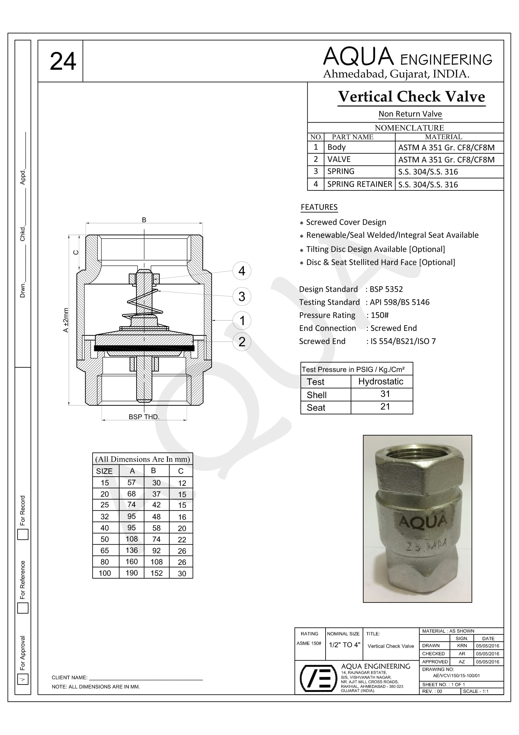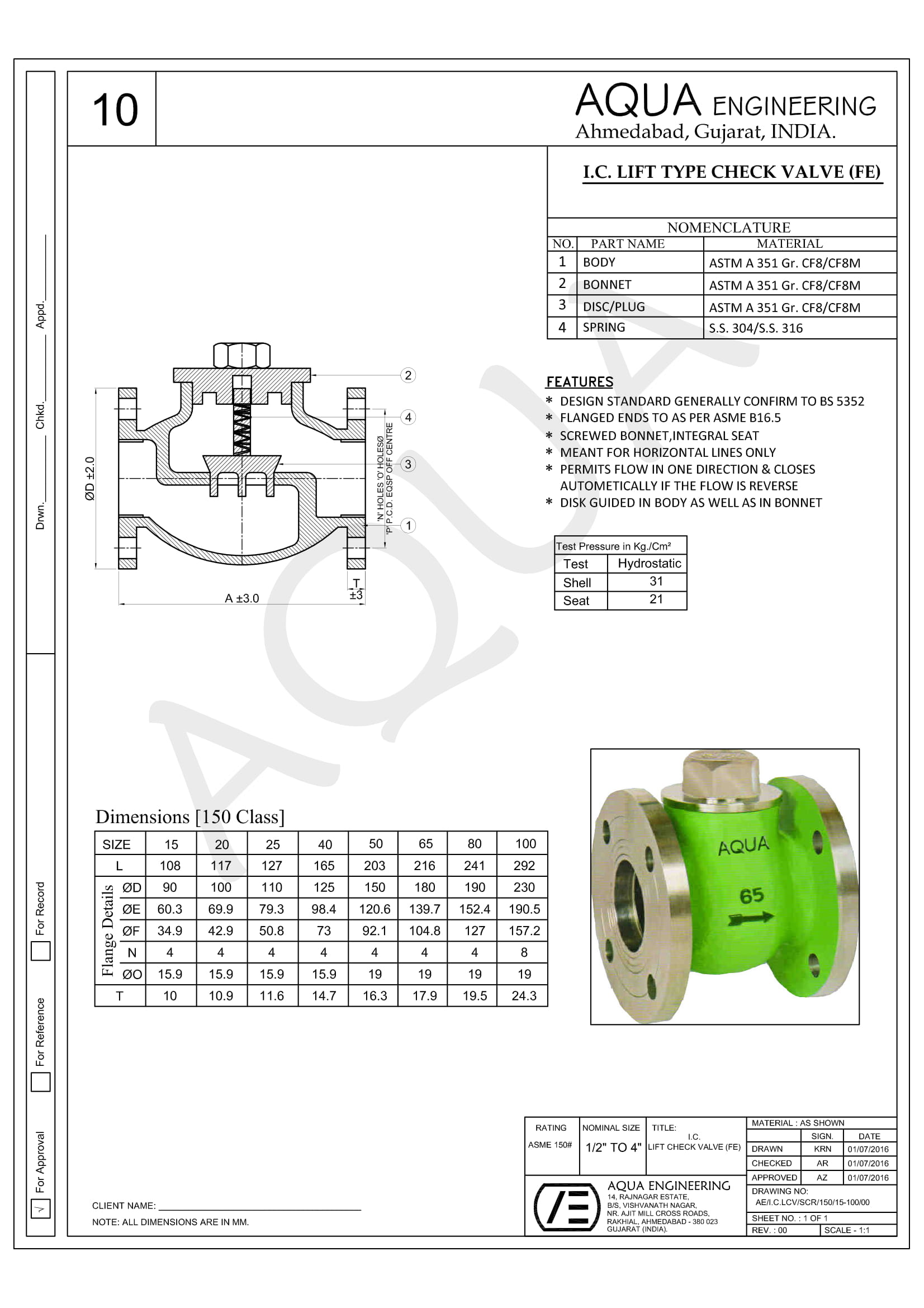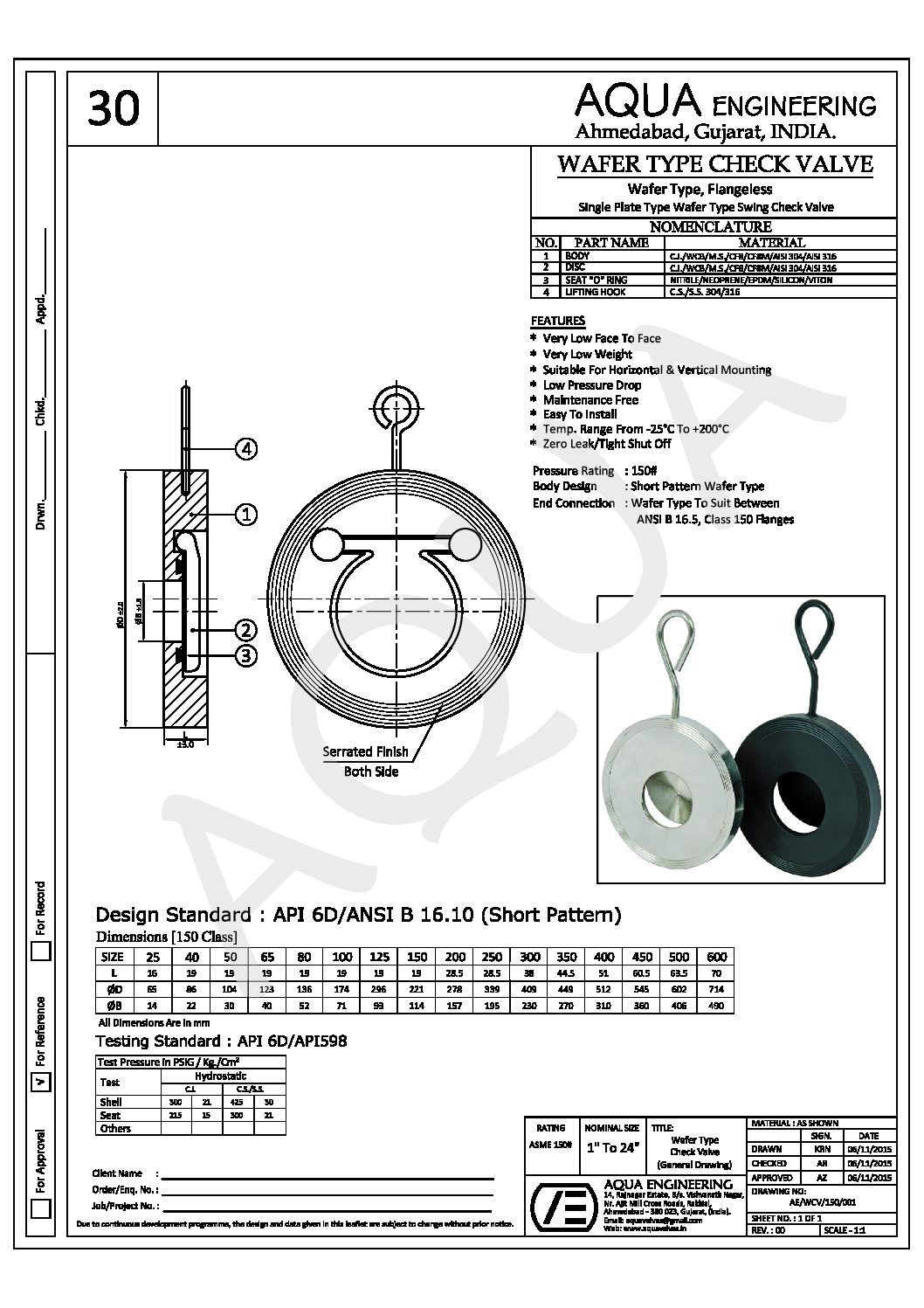According to Standards : BS 5352 / BS 6755 / BS 1868 / ASME B 16.34 /API 6D / API 598 / API 603
